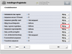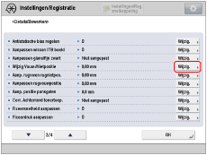 Selecteer de papiersoort die u wilt bewerken in de lijst → druk op [Details/Bewerken] → [Wijzigen] voor <Aanpassen positie rugnietvouw>.
