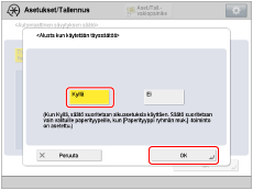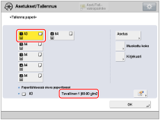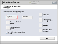 → [Yleisasetukset] → [Paperiasetukset] → [Paperiasetukset] tarkistaaksesi paperityypin.