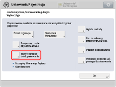 Upewnij się, że opcja [Standardowy] (w przypadku papieru zalecanego) lub „papier do kalibracji załadowany w kroku 1” jest wybrana dla [Wybierz papier do dopasowania].