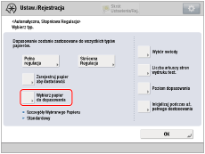 Wybierz szufladę na papier, do której został załadowany papier zarejestrowany jako papier do kalibracji, jako źródło papieru, w którym znajduje się papier niestandardowy pełniący funkcję rodzaju papieru do regulacji.