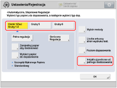 → [Regulacja/Konserwacja] → [Regulacja Jakości Obrazu] → [Automatyczna, Stopn. Regulacja], aby wybrać papier.