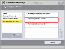 Po zastąpieniu wartości standardowych kalibracji, dane zostaną utracone. Należy uważać, aby nie zastąpić istniejących wartości standardowych kalibracji dla zalecanego papieru podczas rejestrowania nowych wartości standardowych kalibracji dla papieru używanego do kalibracji.