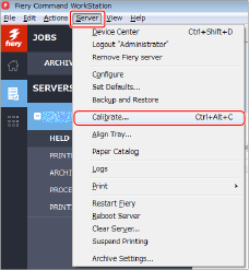 Kliknij [Server] → [Calibrate] w aplikacji Command WorkStation.