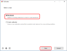 Wybierz pozycję [Create calibration], a następnie kliknij przycisk [Next].