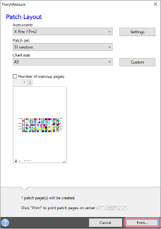 W przypadku wybrania opcji X-Rite i1 Pro 2 wybierz także zestaw obszarów i rozmiar wykresu.