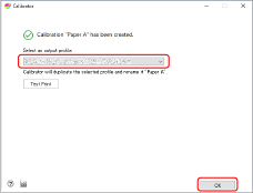 Połącz ustawienie kalibracji z profilem wydruku i kliknij [OK].