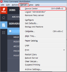 Kliknij [Server] → [Device Center] w aplikacji Command WorkStation.