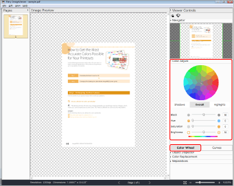 Wybierz kartę [Color Wheel] w panelu [Color Adjust] i przesuwając suwak, zmieniaj wszystkie kolory na stronie tak, aby były wyświetlane w zadowalający sposób.