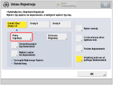 → [Regulacja/Konserwacja] → [Regulacja Jakości Obrazu] → [Automatyczna, Stopn. Regulacja], aby wybrać papier.
