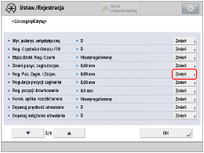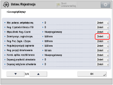Wybierz z listy rodzaj papieru do edycji → naciśnij [Szczegóły/Edytuj] → [Zmień] dla <Regulacja Pozycji Zaginania i Zszywania>.