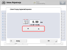 Aby przesunąć pozycję składania dla zszywania zeszytowego w lewo, patrząc przodem w stronę zadrukowanej powierzchni, należy zmniejszyć wartość ustawienia.