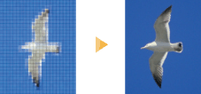 Esta função executa processamento complementar para suavizar imagens de baixa resolução. Os efeitos de resolução insuficiente são reduzidos através da suavização de contornos irregulares em imagens com resoluções inferiores a 150 dpi de fontes como a Internet.