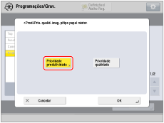 Se programar [Prioridade produtividade] para esta opção, pode ocorrer um brilho irregular ou o toner poderá não estar corretamente aplicado à imagem, em determinadas circunstâncias.