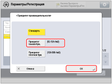 Технически температура блока термозакрепления для бумаги Тонкая 1 (64 г/м2 (17 фнт док.)) и Обычная 1 (80 г/м2 (21,3 фнт док.)) отличается. При установке [Приоритет тонкой бумаги] в следующей процедуре можно сократить время ожидания и повысить производительность, поскольку температура блока термозакрепления оптимизирована для бумаги с небольшой основной плотностью (менее 128 г/м2 (34 фнт док.)).