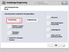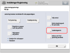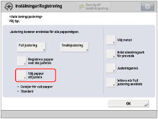 Välj [Standard] (för det rekommenderade pappret) eller pappret för kalibrering som du fyllde på i steg 1 för [Välj papper att justera].