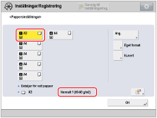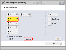 → [Preferenser] → [Pappersinställningar] → [Pappersinställningar] för att ställa in papperstypen.