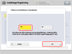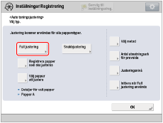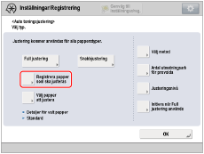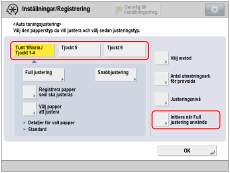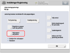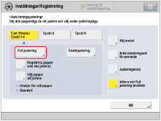 Välj det papper som du vill korrigera och tryck sedan på [Initiera när Full justering används].