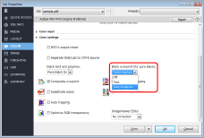 Klicka på utskriftsinställningarna i <Black overprint (for pure black)> enligt det du skriver ut och hur du vill att utskrifterna ska visas.