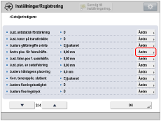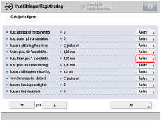 Välj den papperstyp som du vill redigera i listan → tryck på [Detaljer/redigera] → [Ändra] för <Justera placering av sadelhäftningsfalsning>.
