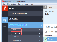 Klicka [PRINTED] eller [HELD] i Command WorkStation.