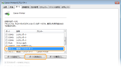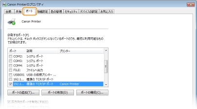 本機のIPアドレスを変更した場合や、ドライバーをインストールした際に正しいポートを選択しなかった場合などは、新しいポートを追加します。