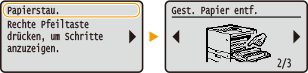 Wenn ein Papierstau auftritt, wird ein Warnton erzeugt und die Meldung <Papierstau.> wird am Bildschirm angezeigt. Drücken Sie