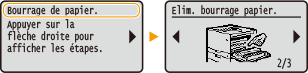 En cas de bourrage papier, une alarme sonore est émise et le message <Bourrage de papier.> s'affiche à l'écran. Appuyez sur