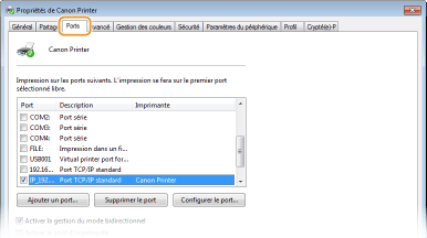 Si vous avez changé l'adresse IP de l'appareil ou si vous avez sélectionné un mauvais port lors de l'installation des pilotes, ajoutez un nouveau port.