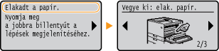 Ha papírelakadás történik, értesítő hanghatás hallatszik, és az <Elakadt a papír.> üzenet jelenik meg a képernyőn. Egyszerű megoldások megjelenítéséhez nyomja meg a