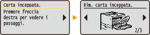 Se si verifica un inceppamento della carta, si genera un segnale acustico e, sulla schermata, compare il messaggio <Carta inceppata.>. Premere