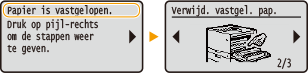 Als er een papierstoring optreedt, klinkt er een alarm en op het scherm verschijnt het bericht <Papier is vastgelopen.>. Druk op