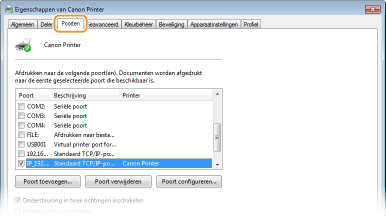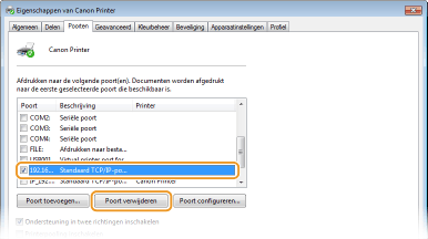 Als u het IP-adres van het apparaat hebt veranderd of als u een verkeerde poort hebt geselecteerd bij het installeren van stuurprogramma's, voeg dan een nieuwe poort toe.