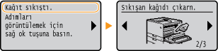 Ekrandaki yordamlar anlaşılmıyorsa sıkışan kağıtları temizlemek için aşağıdaki bölümlere göz atın. Birden fazla konumda aynı anda kağıt sıkışması olursa, görüntülenen tüm mesajları kontrol edin. Kağıt sıkışmalarını gidermeye başlamadan önce