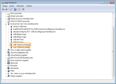 Aygıt Yöneticisi'nde [USB Yazdırma Desteği] öğesinin görüntülenip görüntülenmediğini kontrol edin.