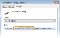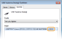 [USB Yazdırma Desteği] öğesinin bu makinenin bağlantısı için kullanılıp kullanılmadığını kontrol edin.