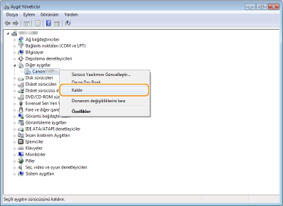 [Diğer Cihazlar] öğesini açın ve makinenin model adına sağ tıklayın