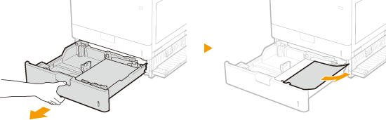Traukite popieriaus stalčių, kol jis sustos, ir švelniai ištraukite popierių.