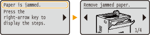 Dacă s eproduce un blocaj de hârtie, se aude un sunet de alarmă şi pe ecran se afişează mesajul <Paper is jammed.>. Apăsaţi