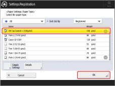 → <Preferences> → <Paper Settings> → <Paper Settings>, and change a type of paper for the paper source to that paper.