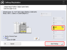 Select the paper source that contains the paper type to adjust → press <Start Printing>.