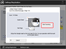 on the test page for the third scan operation with the mark on the guide sheet → press <Start Scanning>.