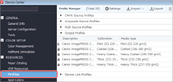 Click the [Profiles] in the device center screen.
