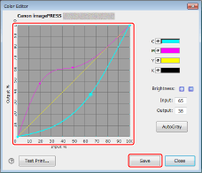 Adjust the CMYK tone curves, and then click [Save].