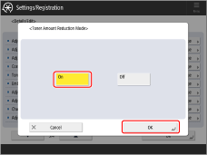 Turning on the Toner Amount Reduction Mode reduces the amount of toner that is used. As a result, you may prevent the paper from wrapping around the fixing film. However, this setting may change the color of printed images, so print a test sheet to check the finished result.