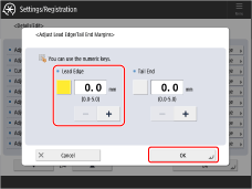 "Maintenance" > "Paper Type Management Settings" in the User's Guide > see the subsection "Adjust Lead/Tail Margins"
