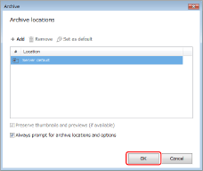 Specify the archive location if necessary and click [OK].