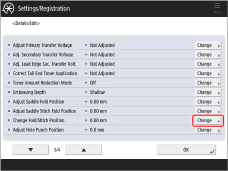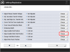 Select the paper type that you want to edit from the list → press <Details/Edit> → <Change> for <Adjust Saddle Stitch Fold Position>.