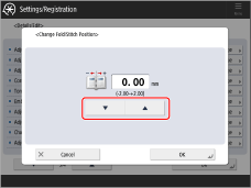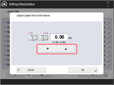 If you want the saddle stitch fold position to shift to the left while facing the printed side of the printout, decrease the setting value.