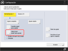 Pulse <Seleccionar papel para ajustar> y seleccione el papel para la calibración cargado o <Estándar> (para el papel recomendado).