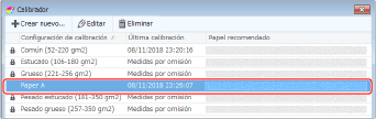 El ajuste de calibración para el papel en el que desea imprimir se añadirá a la lista.